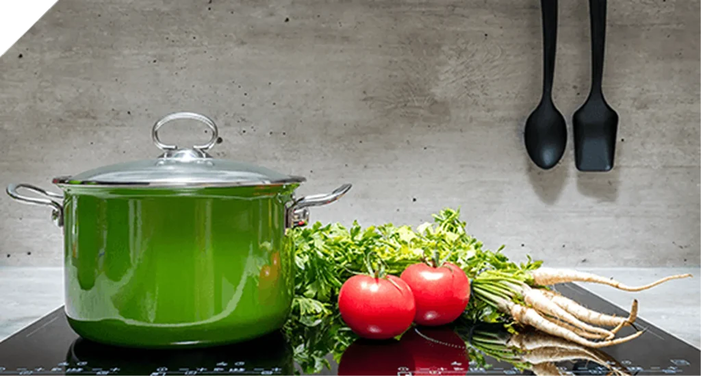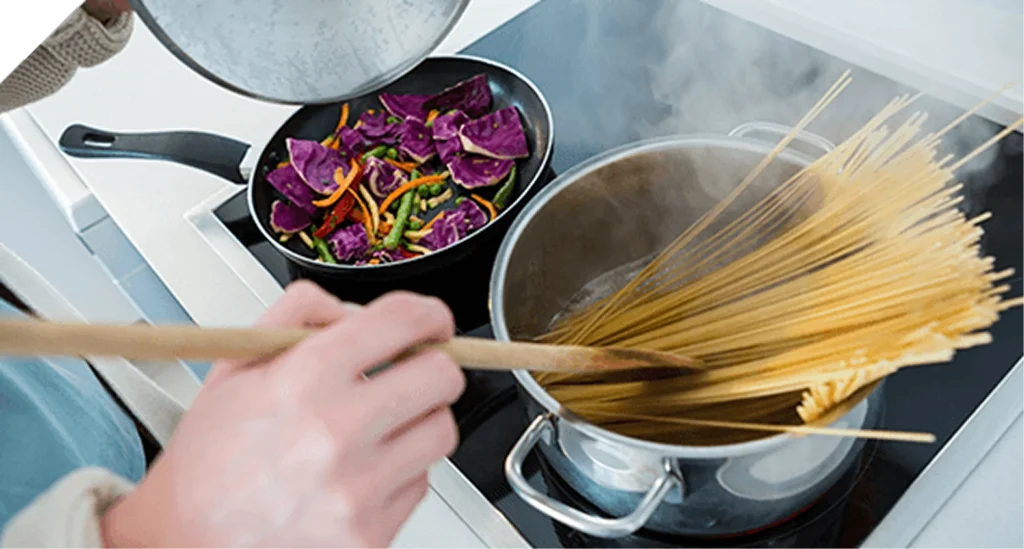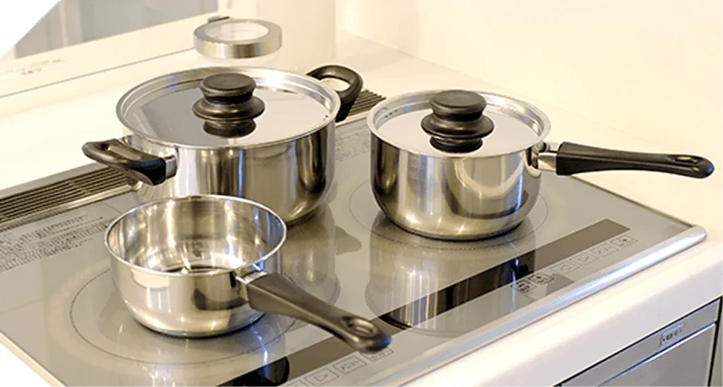 熱効率がガスと比較しても格段に高く、エネルギーロスが小さいという特徴があります。また200Vのハイパワーで調理時間も短くできます。
