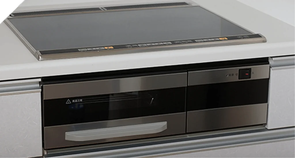 天ぷら油の温度調節や魚の両面焼きの際に出るイヤなニオイの脱煙機能、茹でる際のタイマーや万が一のチャイルドロックなど、余裕のあるキッチン空間を演出してくれます。