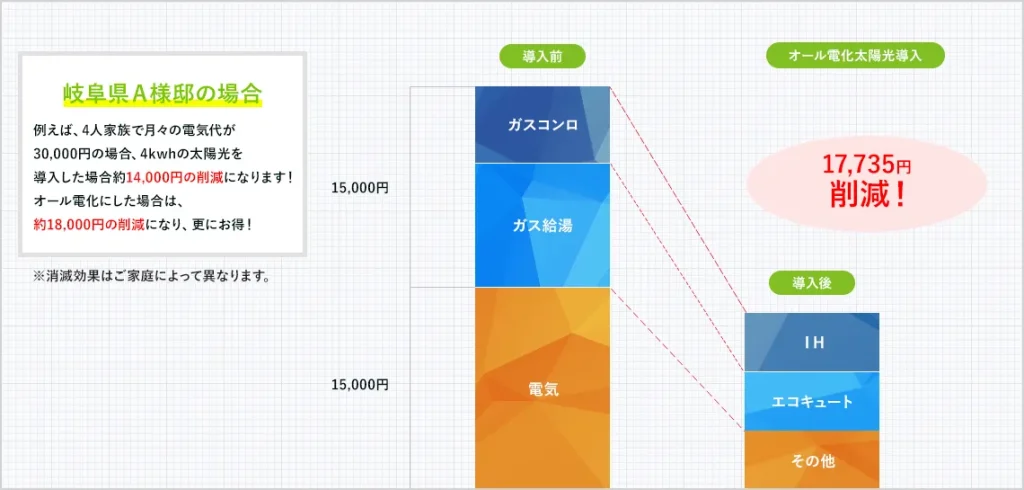 オール電化にすることで、太陽光発電と蓄電池で手に入れた安価な電気を有効に使用することができます。